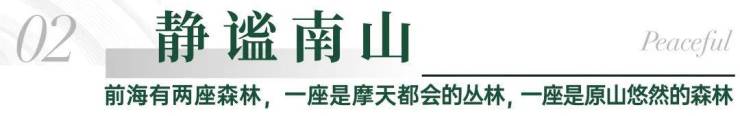 🔘大南山生态住区项目所在前海合作区大、小南山片区西组团规划定位重点安排教育、配套、体育等公共服务设施和生活服务设施(数据来源:《中国(广东)自由贸易试验区深圳前海蛇口片区及大小南山周边地区综合规划》与【桂湾】国际金融城和【妈湾】深港国际服务城两大前海核心区引擎形成前海黄金三角,工作、生意生活尽在掌握🏆山海通廊:约650米两个红绿灯,咫尺2.9k㎡妈湾理想城市约 53.8 公顷绿地公共空间,营造全域公园城市,宜业宜居的绿色人文之城