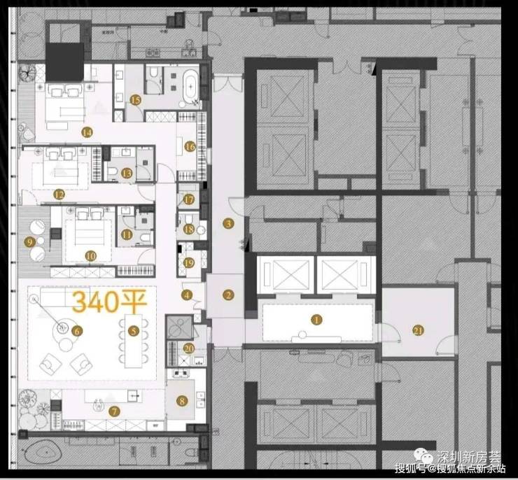 340平三套房总价4500--5800万 3套房,套房设计,带多功能藏宝阁。