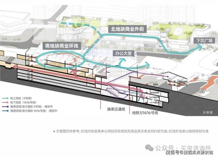 二是东部唯一的四线地铁交汇枢纽,地铁3号、14号、16号、33号线(深大城际,规划中)四线在大运站交汇,实现站内换乘。后期也会引进与深铁商业直连