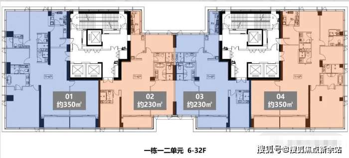 华侨城新玺T1栋一、二单元 6-32F 约350㎡四房两厅四卫,约230㎡三房两厅三卫,约230㎡三房两厅三卫,约350㎡四房两厅四卫