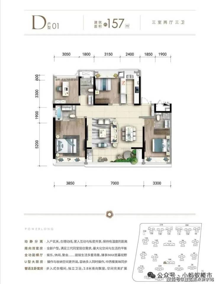157㎡大户型:针对高端改善客户,空间布局更为阔绰,充分考虑多代同堂家庭的居住需求,实现家庭成员间的互不干扰与和谐共处。
