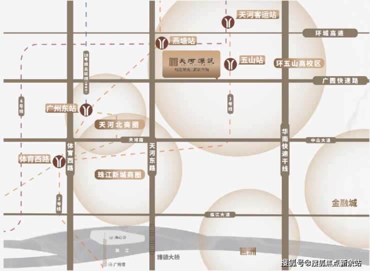 交通便捷:距离珠江新城仅约4.5公里,大约15分钟车程即可到达;周边四大地铁站环绕,出行极为便利。