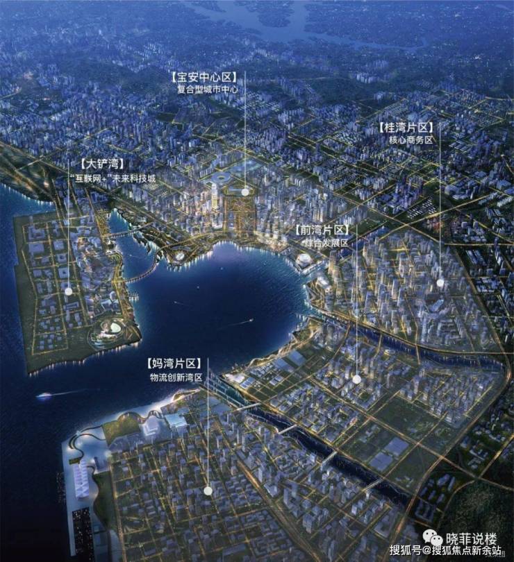 (2021年9月6日,前海深港合作区正式官宣扩容至120.56平方公里,以“一湾两山五区四岛”新格局,金融、现代物流、科技服务、信息服务为重点,带动世界未来发展。)