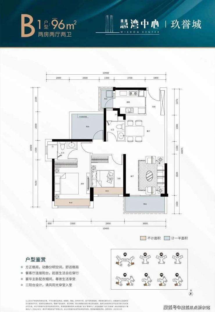 3栋1单元三房96㎡户型:0.81折签约+返现30%(折后9700~10800)
