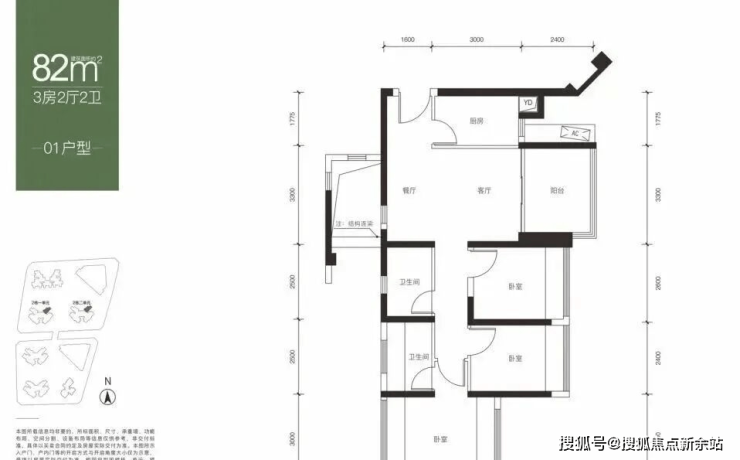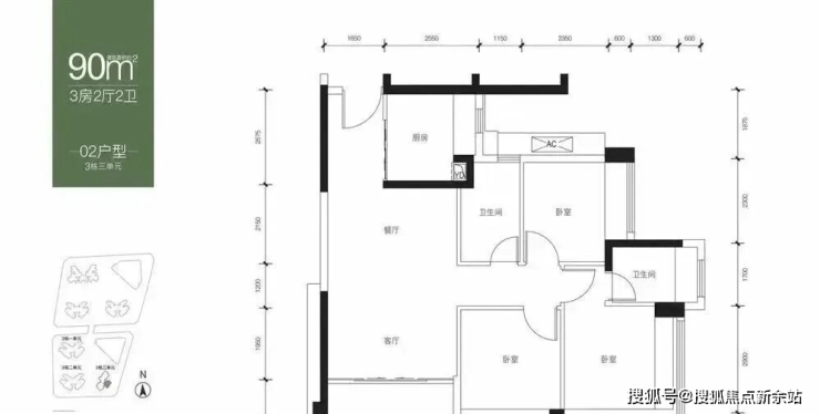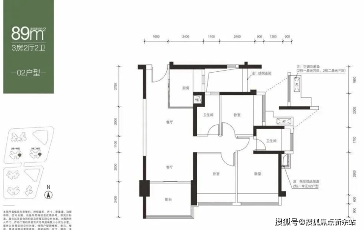【面积】:约82-89㎡3房2卫