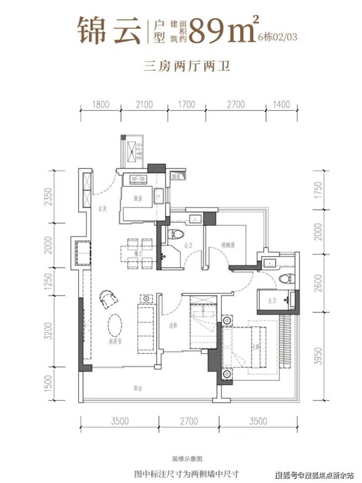 为南北通透竖厅,设独立玄关,客厅面宽5.1米,客餐厅分离设计。主卧有转角飘窗及衣帽间。得房率约98.97%(含赠送),客厅连接约14.09㎡超大阳台,朝向西南或东南。