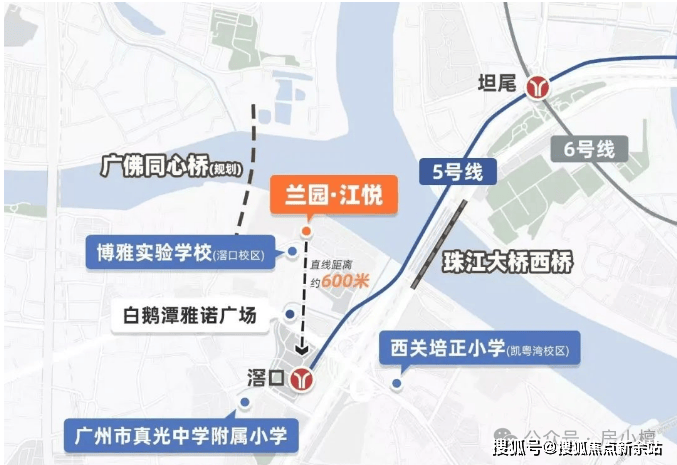 项目位于5号线滘口站附近,距离地铁口约1公里,出行十分便利。旁边规划的广佛同心桥可直通佛山地区,白鹅潭大道未来也可通往广船和医药港等地。