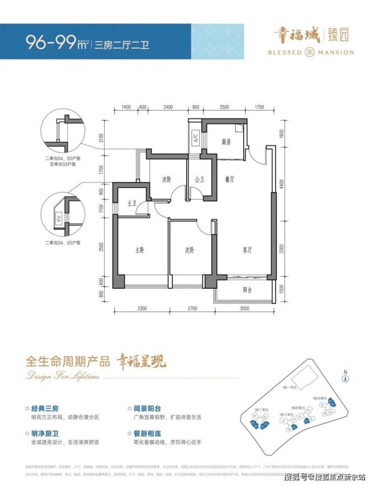 约96-99㎡三房两厅两卫(竖厅),折后:约490-590万