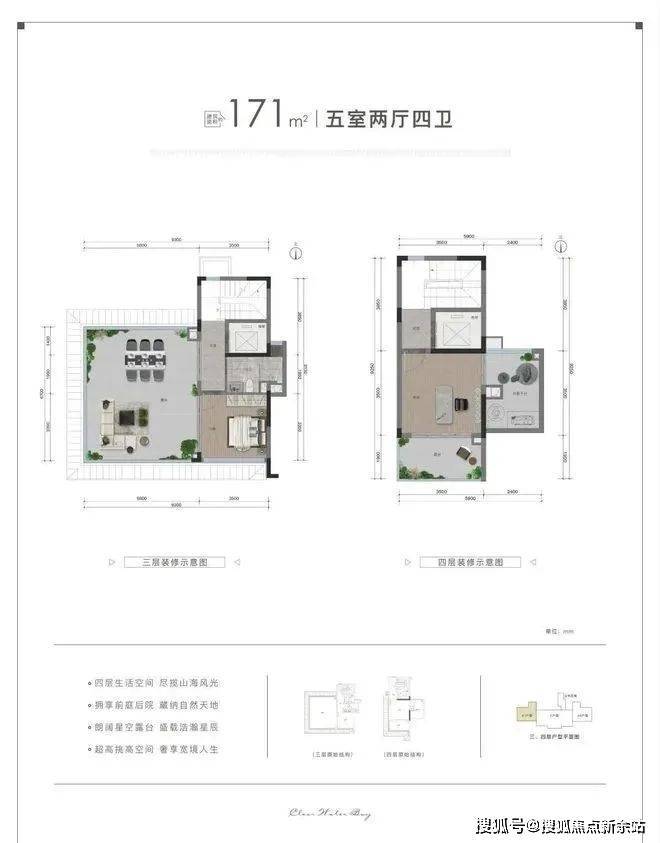 从山海中化形,前场从清水湾滨海环境中汲取灵感,以"椰岛、潮汐、礁石、海鸟"为景观元素,在场地中呈现构筑与自然共生的场景;后场提取海岛典型休闲生活场景中的空间语言,比如密林、幽径、光影等,塑造体验空间,引导使用者置入其中感受清水湾·雅澜休闲与居住一体的空间品质。设计因势利导,将"面海靠山、清风自来"藏纳其中,方寸之间,收藏自然,致敬自然。