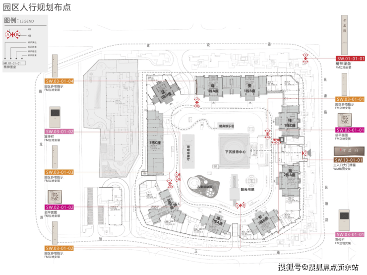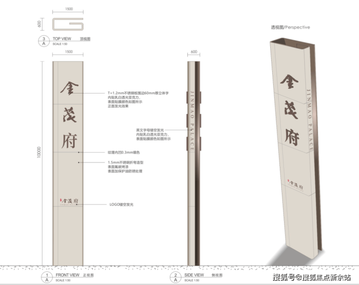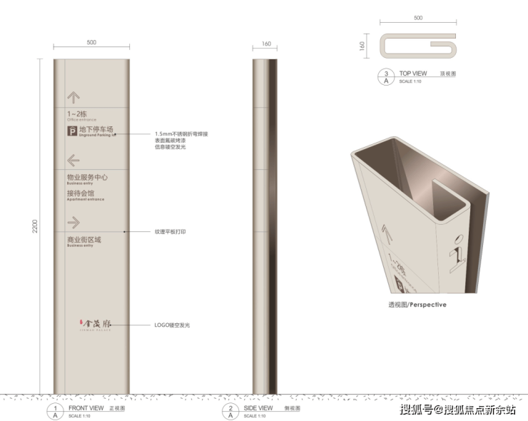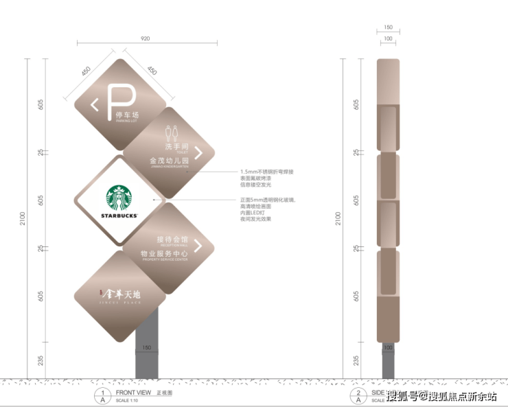 对传统文化的理解进行解构,融入现代审美的简约之美,在经典的基础上构建创新现代元素+ 东方韵味,在标识基本的功能性的基础上,根据金茂府建筑环境景观衍生出标识系统识别色彩,应用于所有标识别指示牌中。