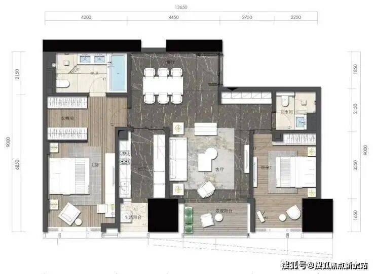约164㎡2房2厅2卫(独立入户玄关,动静分离,约33㎡豪华主卧,承载品质生活)