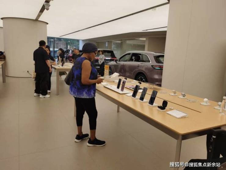 10月5日中午,记者来到地处正大广场一楼的华为旗舰店。这里正好几名老外正在挑选新上市不久的华为三折叠手机和折叠电脑,一打听,他们来自西班牙。不远处,还有一位包着头巾,黝黑皮肤的中年女老外正在试戴华为耳机。
