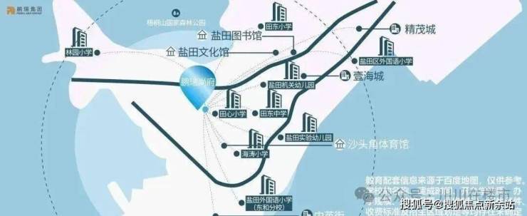 【教育】:自带约3000㎡9班制幼儿园;据百度地图显示,项目毗邻田心小学,周边有田东中学、盐田机关幼儿园等学校。