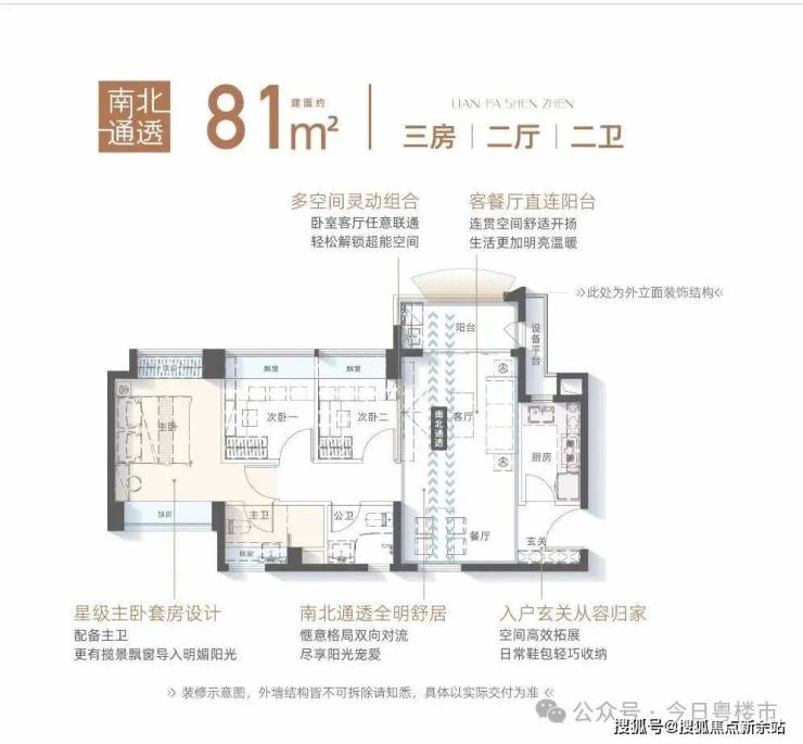 ①精聚焦青年家庭需求,联发精研定制建面约81/91㎡超能三房两卫成长空间,综合使用率高;