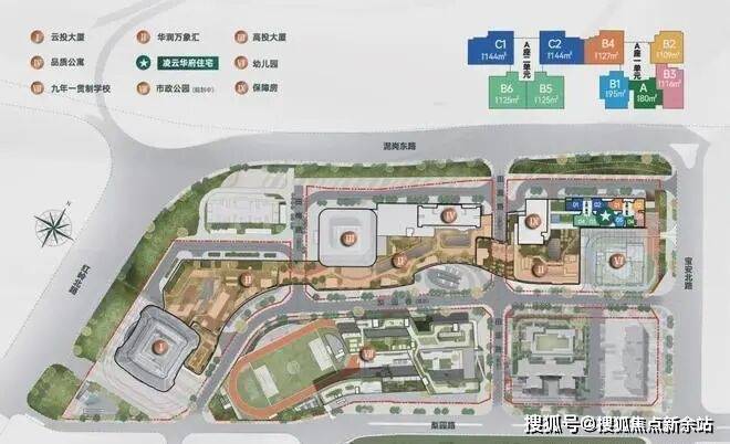 综合体具体包含高端商务写字楼(云投大厦)、研发办公楼(高投大厦研发办公楼)、商务公寓、云端住宅(凌云华府)、华润万象汇商业、配建幼儿园,以及坐拥家门口九年制学校。