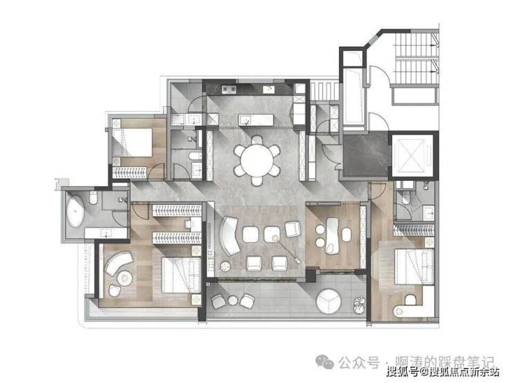 同时,台系主打三大健康体系:先天健康、科技健康、心灵健康。将自然引入室内,贴合人体习惯的健康科技,在空间上优化人际关系,实现身体和心灵双重满足,构筑家庭、邻里、圈层共融。