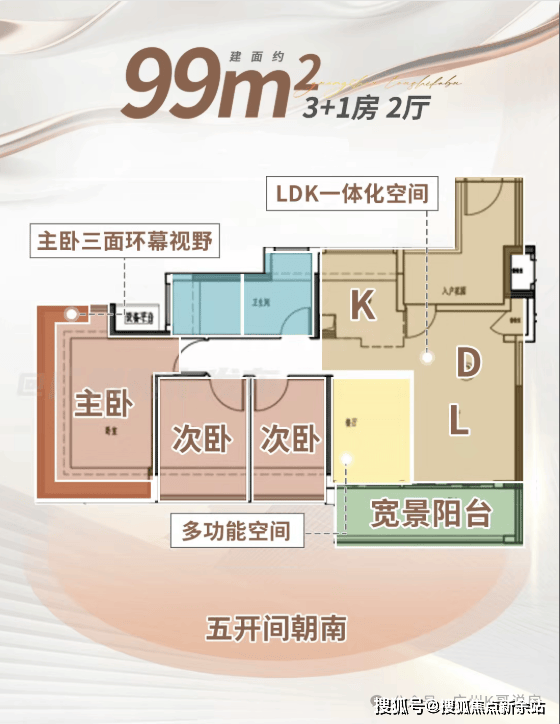 99平户型:IMAX宽景阳台、主卧三面环幕视野设计,室内就像一座移动的观景台。