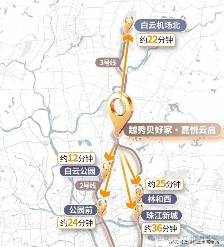 其中,3号线到机场、珠城、天河北,2号线到白云新城、公园前,都是核心产业区,且是直达,半小时通勤圈。