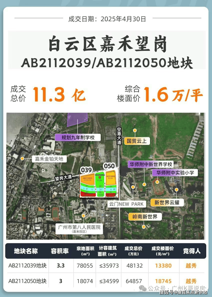 嘉禾望岗AB2112039地块、050地块,被越秀打包拿下。地价分别为1.34万/㎡和1.87万/㎡(未扣除配建)。