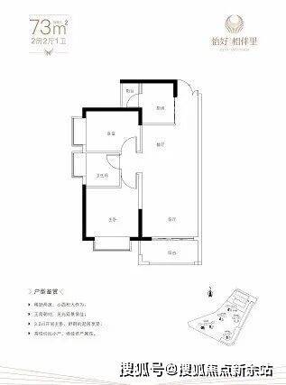 2房2厅1卫 建面约73㎡