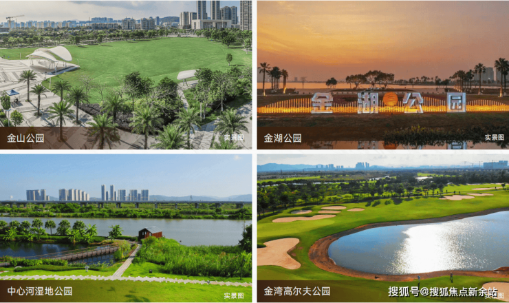 金湾情侣路、金湾高尔夫、金湖公园、中心河湿地公园、金山公园,五大生态绿地环绕,自然鲜氧每一天。
