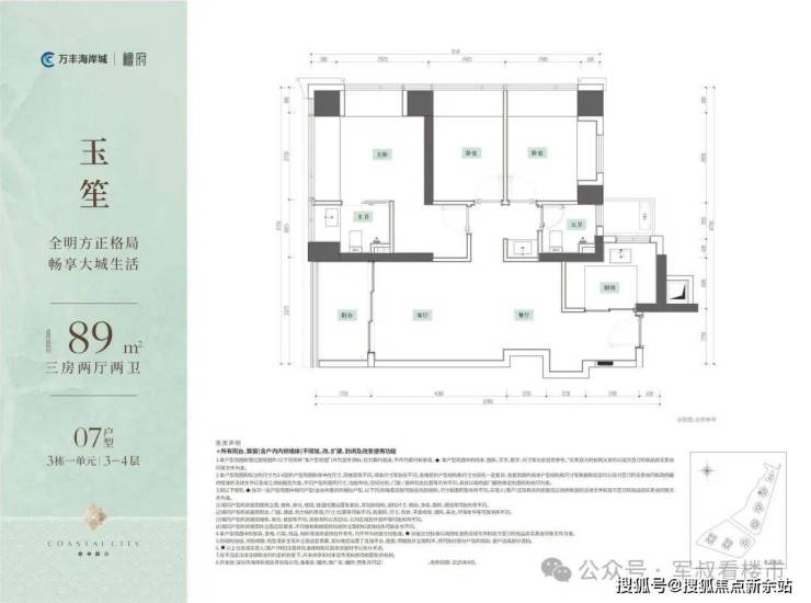 【户型品鉴】89-103㎡3-4房💎约89㎡3房2厅2卫史上入驻海岸城!!最低门槛户型!!💎户型亮点:• 玄关“S”墙设计,满足冰箱和入户收纳柜• 进深约1.75m大阳台,轻松打造私家小花园• U型厨房设计,洗切炒动线合理布局• 主卧衣帽间+双面飘窗,小户型大享受