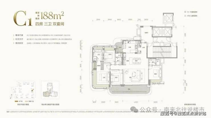 项目容积率仅为3.4,共规划22-24层的11栋小高层住宅,主打纯大户型产品首推的5、6、7单元约180套房源,所有户型均实现独立入户,新规设计下使用率接近100%(以实际为准)。