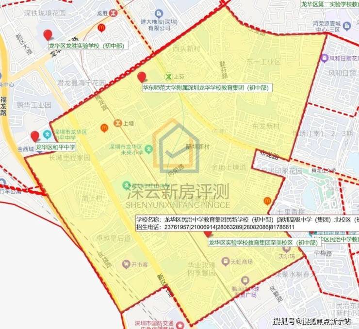 中学学区:深圳市艺术高中民治学校初中部、龙华实验学校A1范围内;
