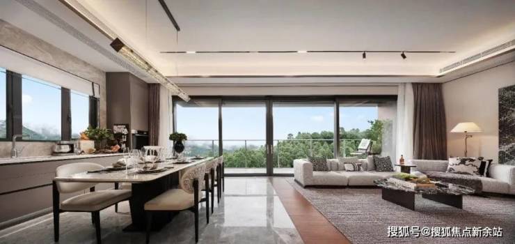 公区也极为强调这种开阔感,客厅、餐厅、阳台、中西厨房一体化,共同构建了一个超级社交中心,会客、观影、聚餐、开party......