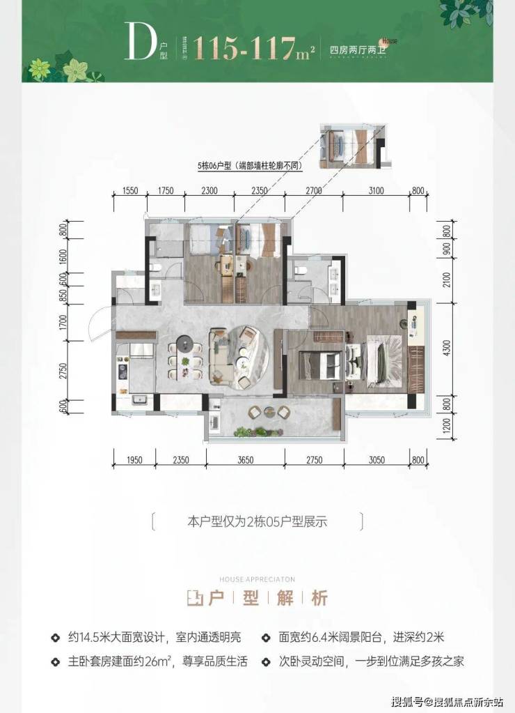 前海会展首发建面约78-117㎡三四房新规作品,户型拓展后实际使用率最高可达105%;主、次卧270°转角双飘窗(建面约117m次卧除外);建面约9-13㎡新规宽景阳台重构居住想象