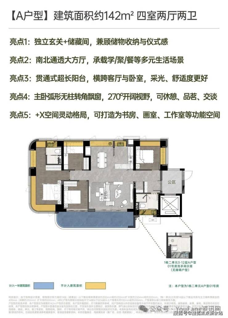 2)灵动空间格局,因更高的获得感而松弛四梯五户,独立电梯厅;