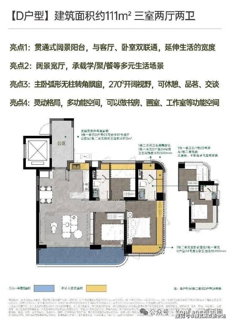 建面约111㎡宽厅阔景 灵动三房;