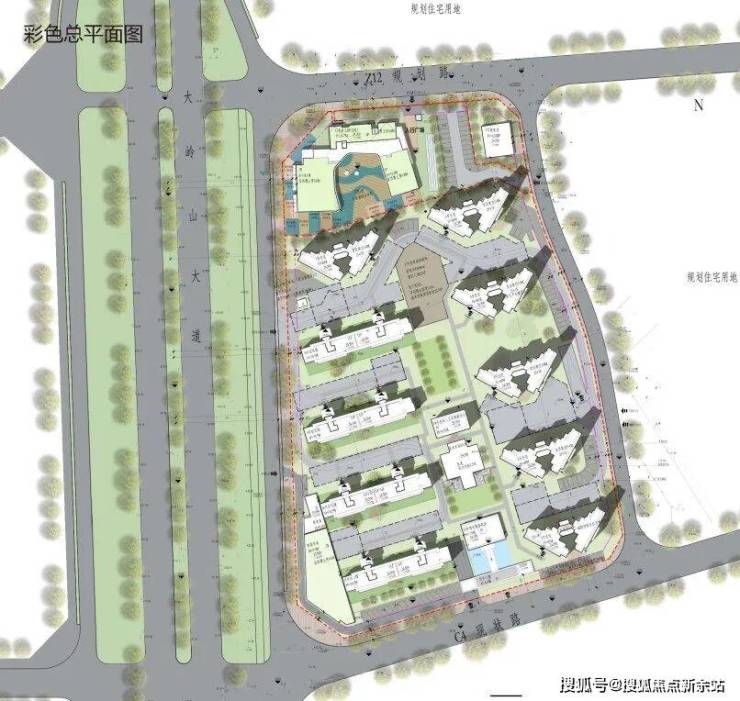 本项目由6栋约80米的住宅楼,4栋约35米的住宅楼,1栋约17米的幼儿园组成。高层住宅组团于基地东侧,多层住宅组团位于基地西侧,两个组团相对独立,并通过景观进行衔接。
