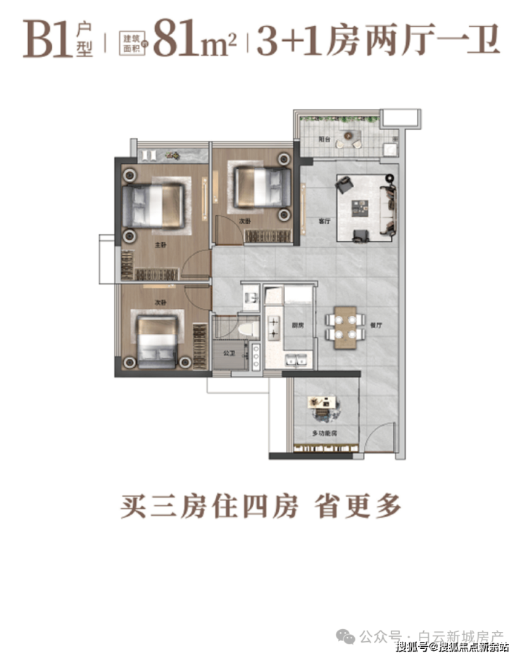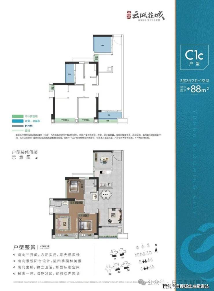 特点:园景四房,动静分区,方正实用,全明空间,通风采光佳。