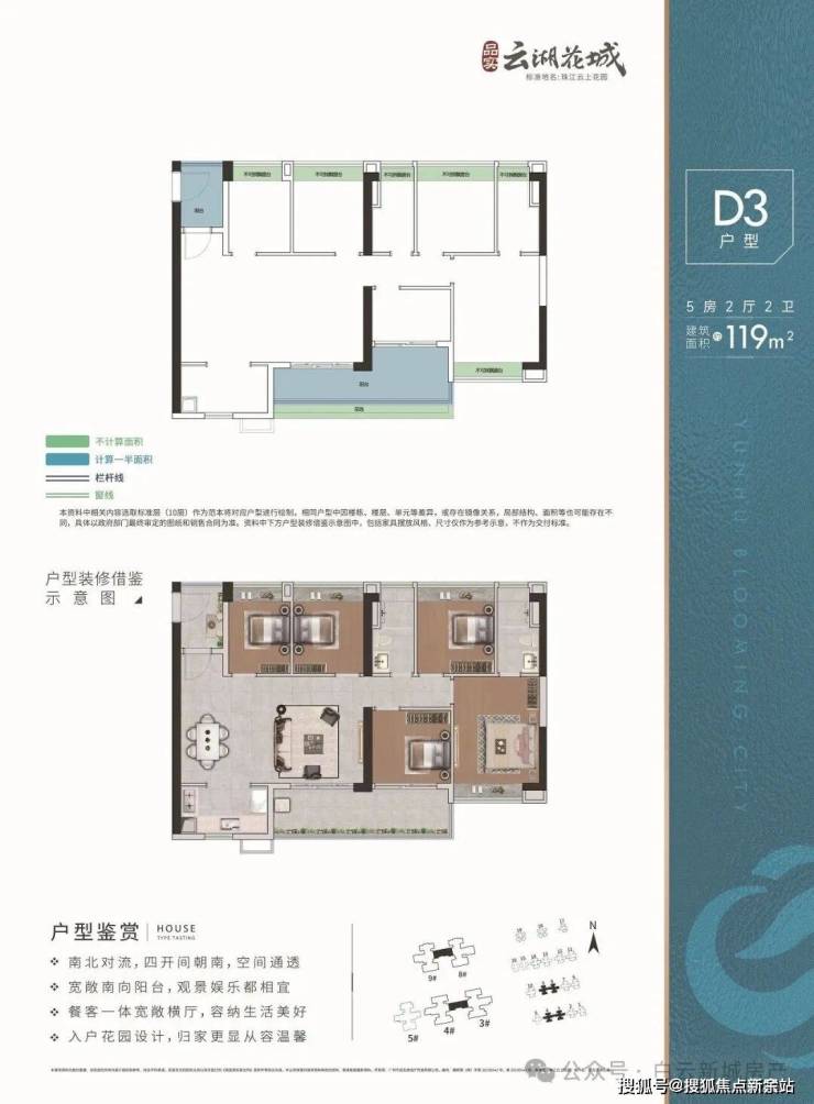 4. 119㎡五房二卫户型🏢 广州品实·云湖花城【售楼处认证电话】🎥:400-856-3771(已认证)⭕