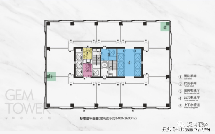 VIP体系 :标准层均预留上下水管道,23-30F配备总裁洗手间