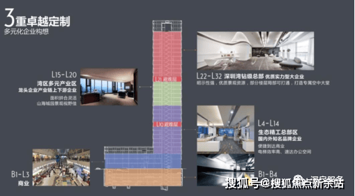 楼层分布 :写字楼4~32层;商业-1~3层;停车场-1~-4层