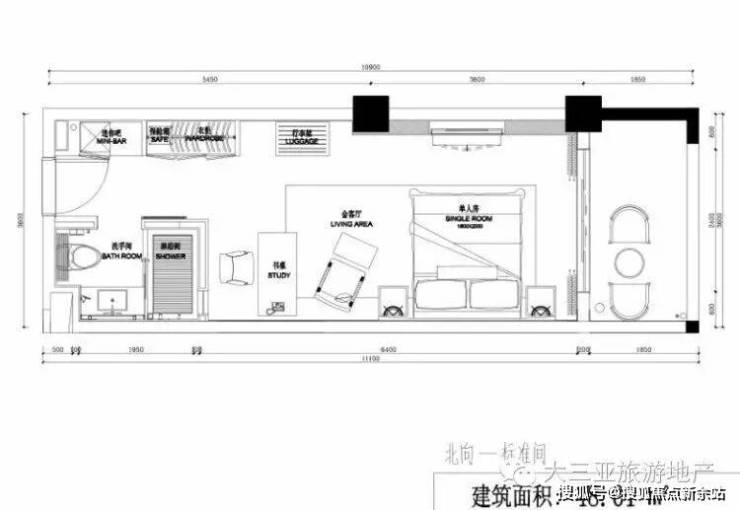 户型为46/48平大开间,朝向南北。3.6米开间 10.9米进深。远观山 近看河 ,俯瞰空中花园。