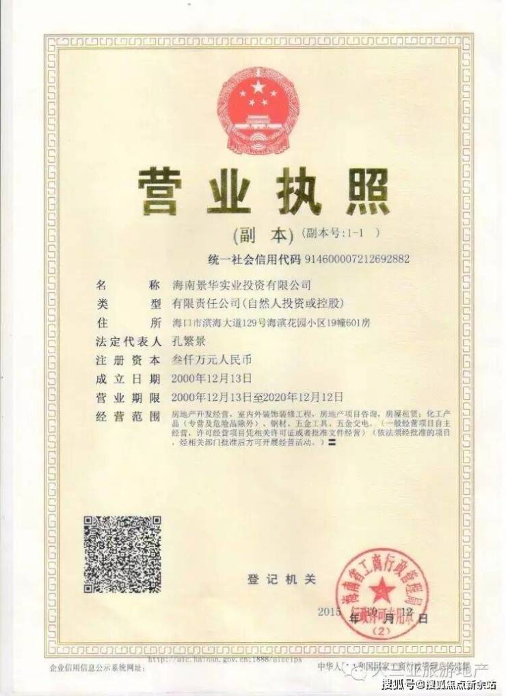 开发商-开发资质 开发商为海南景华实业投资有限公司。