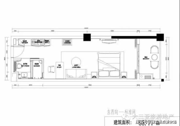 户型为55.77平方米,朝向为东西,3.6米开间,12.45米进深。10楼可看海户型 起价14000元,含2000一平米 赢装修。