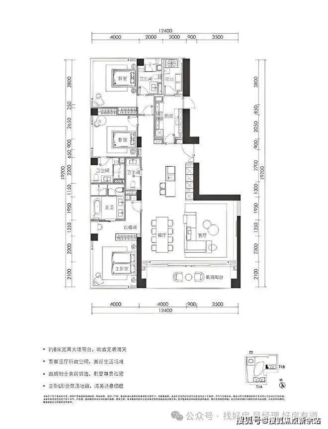 ★280㎡三房两厅四卫:位于1栋三、四单元24-32层,为05、08户型。拥有超8米超宽幕开间,厅出阳台可直面海景。采用三套房设计,主卧配备L形全景落地窗,占据270°最佳观海位。