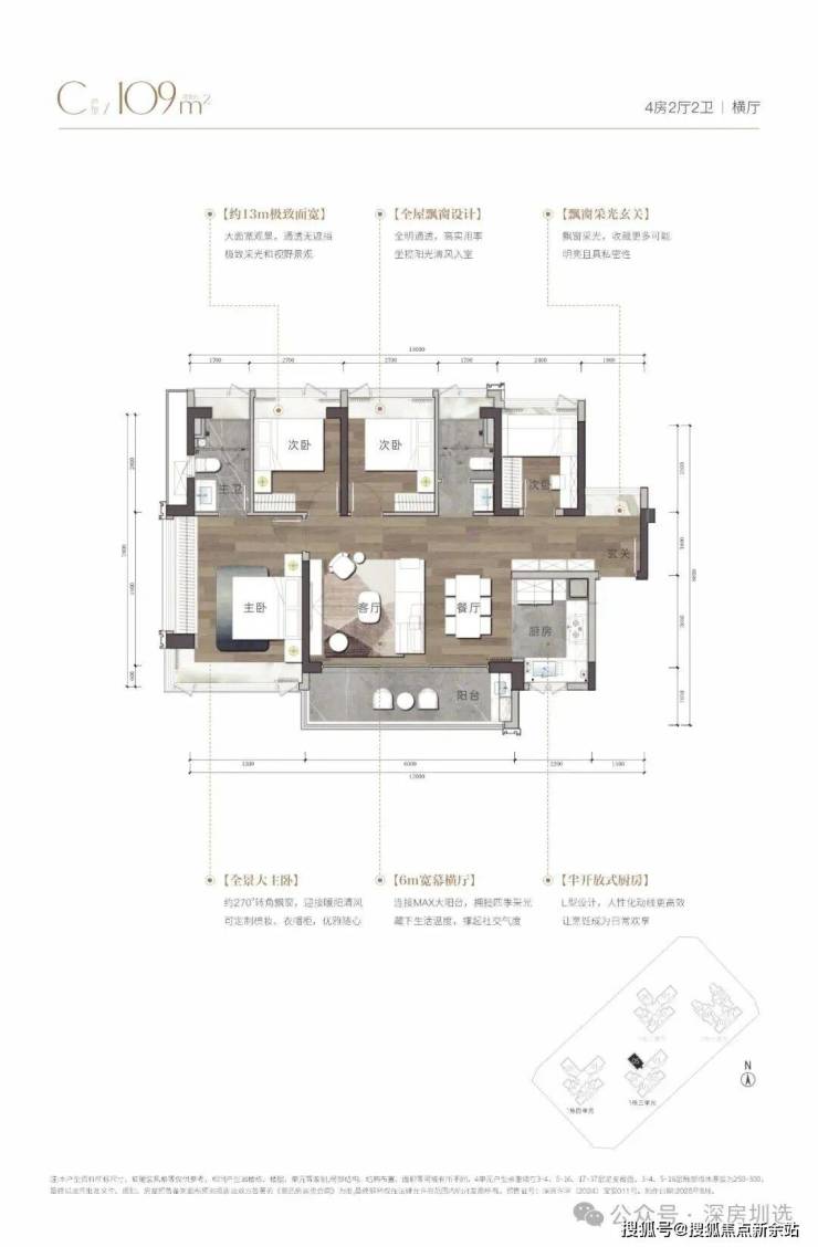 【产品面积】建面约108㎡/109㎡/138㎡~143m²海幕纯四房