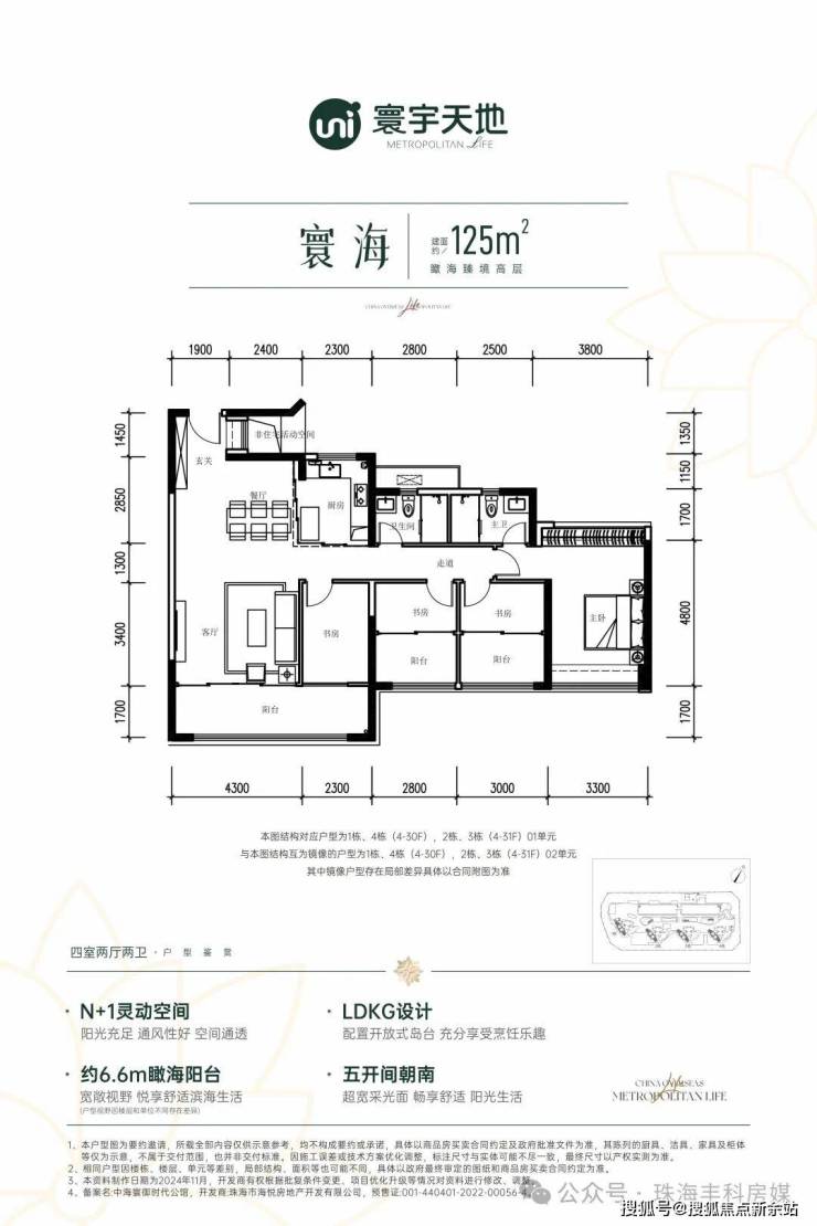 约6.6m瞰海阳台,LDKG开放式岛台设计,五开间朝南
