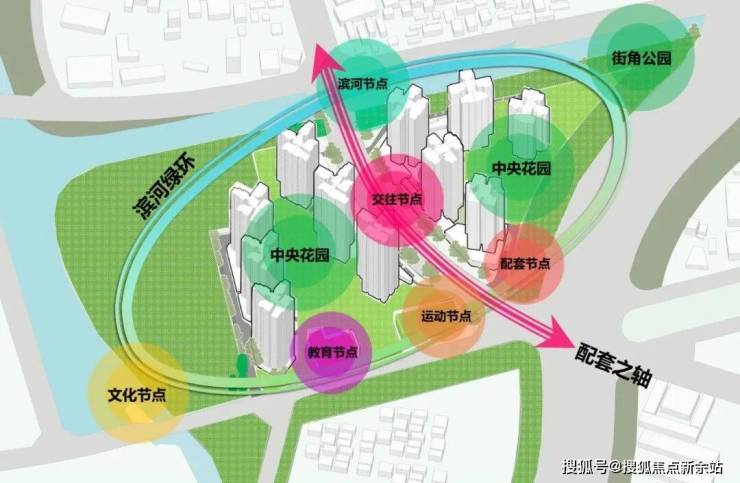 该项目打造一环一轴的规划结构:一环为滨河绿环——营造荔湾休闲都市的温情生活底色;一轴为配套之轴——打造友爱型的邻里社区标杆。