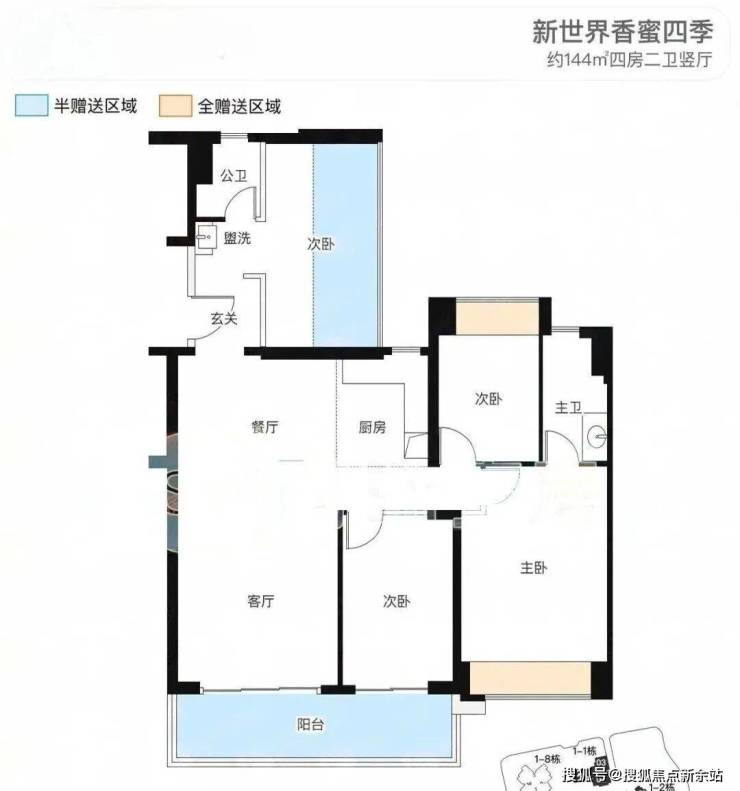 【建筑面积144㎡4房2卫】
