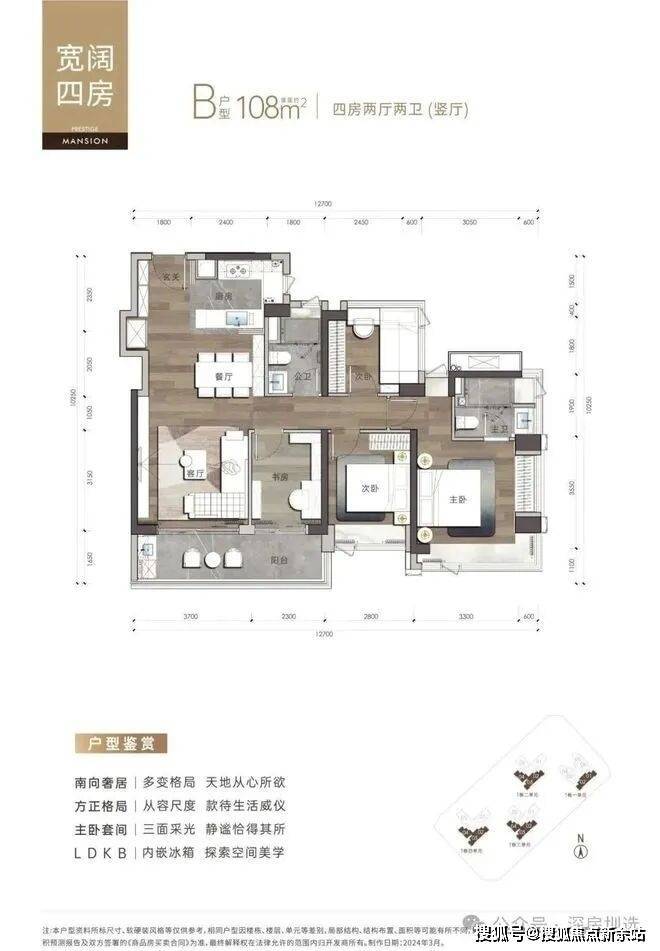 建面约95㎡/108㎡/109㎡/138㎡3-4房,格局方正,打造宽景瞰海、双飘窗主卧、步入式衣帽间等个性化空间。