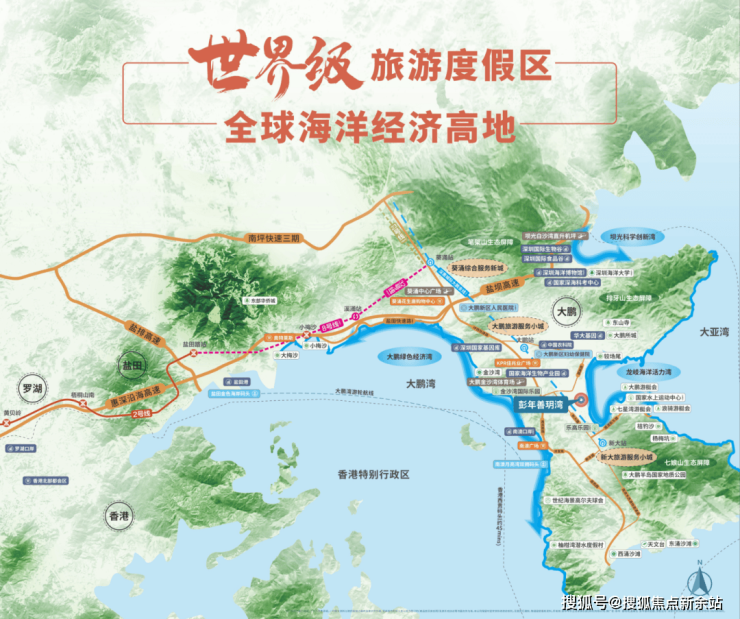 🚇 轨:深惠城际大鹏支线新大站,1小时内可直达市区(预计2024年年底竣工)。