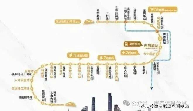 光明城高铁站,也是广深港高铁线和赣深高铁进入深圳的第一站,周边还邻近观光路,光侨路,深圳外环高速,龙大高速等主要交通要道。