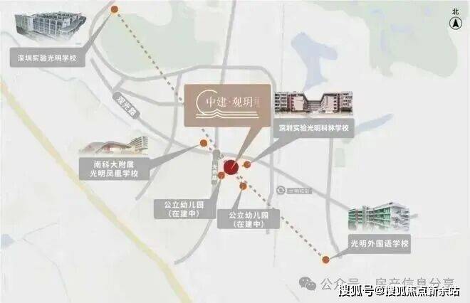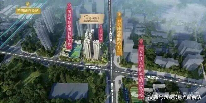 中建·观玥名邸项目地址位于深圳市光明区凤凰街道光侨路与观光路交汇处东南侧,地处光明科学城核心区与凤凰城板块交汇处。是新规后建设的楼盘,也是高铁站板块最后一块居住用地,加上赠送后得房率94-102.95%,并且是该区域内唯二总高只有32-33层的住宅,家门口深实验科林学校+13号地铁线德雅路站。