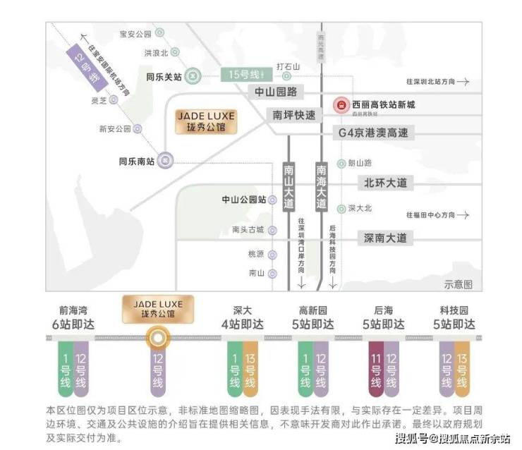 交通配套:项目紧邻地铁12号线同乐南站(约600米),1站可达中山公园,4站直达科技园,5站可达高新园。在建的15号线同乐关站(预计2028年12月开通)距离约1公里,将串联宝中、前海、深圳湾、西丽等地,被称为深圳"一环线"上的重要一环。规划中的24号线开通后4站可达高新园。